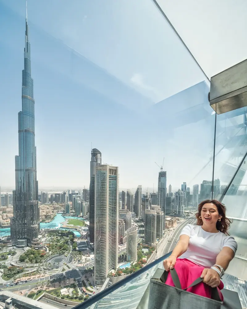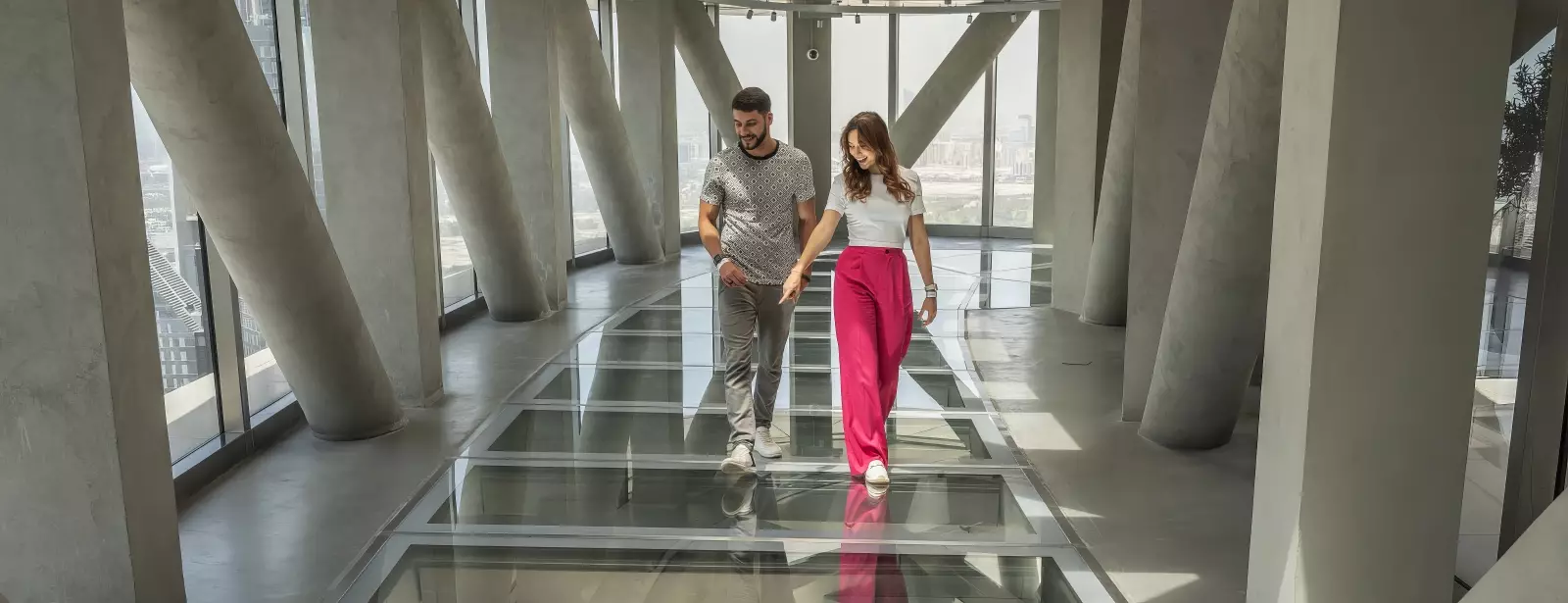 Посещение смотровой площадки 360, с полом и горкой из стекла: